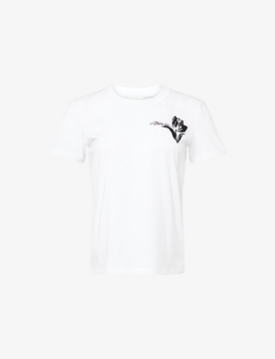 Tulip Embroidery Cropped Short-Sleeve Cotton-Jersey T-Shirt