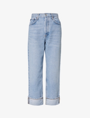 Leena Fringed-Cuffs Straight-Leg Mid-Rise Denim-Blend Jeans
