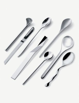 Set the table in style with our collection of Alessi's stainless steel cutlery. With an array of table spoons, table forks, prongs, table knives and tea spoons, each piece adds instant polish to your dining table - whether you're hosting guests for a dinner party or cooking for the family.