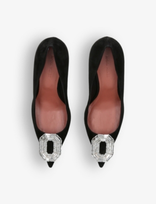 AMINA MUADDI: Camelia crystal-embellished suede slingback courtsAMINA MUADDI: Camelia crystal-embellished suede slingback courts