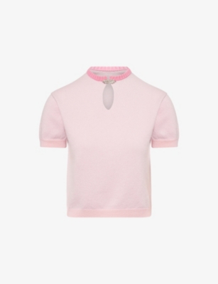 Cutie Strass Short-Sleeves Cashmere Top