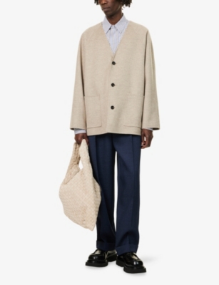 V-neck brushed-texture relaxed-fit wool jumper