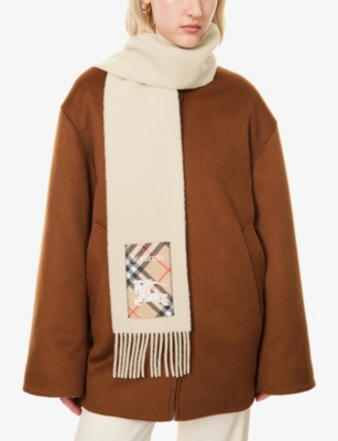 BURBERRY: Check Label Cashmere ScarfBURBERRY: Check Label Cashmere Scarf