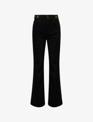 Kimberly Flared-Leg Horsebit-Trim Denim Jeans