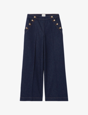 Wide-Leg Denim-Look Woven Sailor Trousers