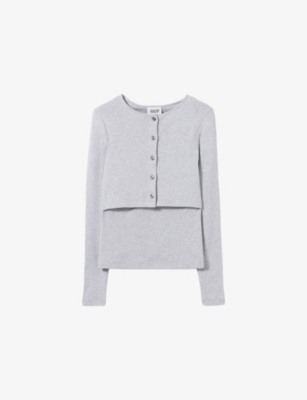 Round-Neck Long-Sleeve Cotton Cardigan And T-Shirt Set- Discount price:£97.30