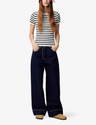 Short-Sleeved Contrast-Trim Knitted T-Shirt- Discount price:£127.20