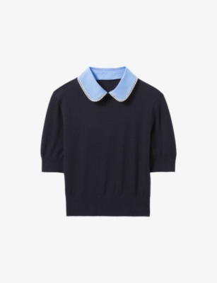 Detachable-Collar Short-Sleeved Knitted Top- Discount price:£159.20