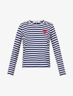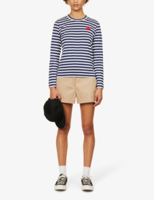 Stripe-pattern brand-embroidered cotton-jersey T-shirt
