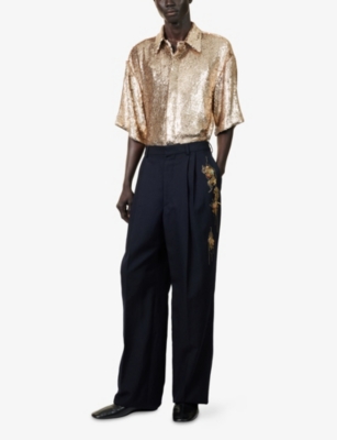 Sequin-Embellished Short-Sleeves Woven Shirt