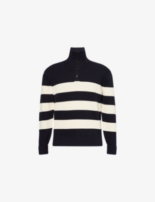 Stripe-Print High-Neck Knitted Cotton Jumper