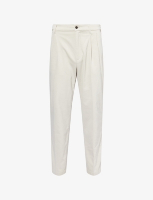 Double-Pleated Straight-Leg Cotton Blend Chino Trousers