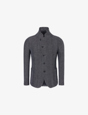 In our selection of Emporio Armani blazers, explore shades of blue and black for when you want to look businesslike. Single-breasted iterations with sharkskin weaves or pinstripes are just the thing for office days. Dressing for that summer heat? Browse tailored options made from lightweight materials in brighter tones such as light grey and purple. They're signed off with branded buttons and are a style-driven alternative to traditional suiting when the temperatures start to climb.
