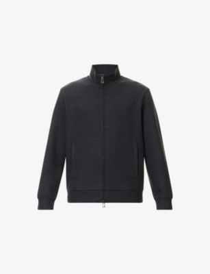 High-Neck Chevron-Jacquard Wool-Blend Jacket