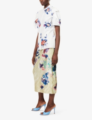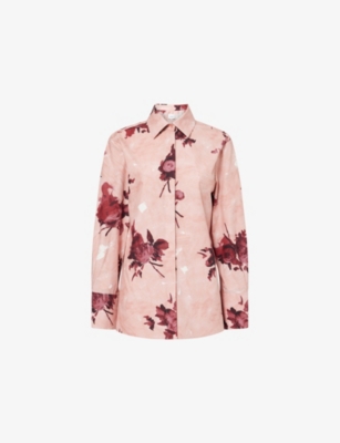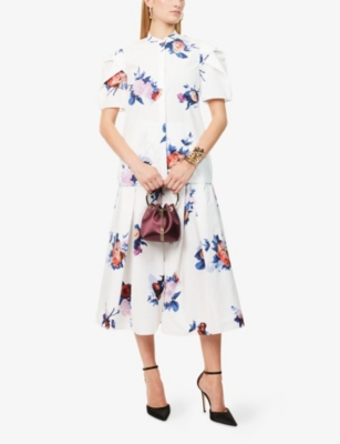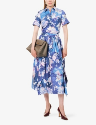 Floral-Print Long-Sleeve Cotton-Poplin Midi Shirt Dress