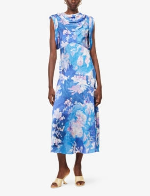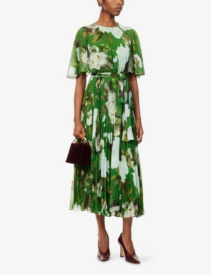 Leaf-Print Sleeveless Flared Cotton Midi Dress