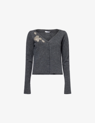 Sequin-Embellished Cropped Alpaca-Blend Cardigan