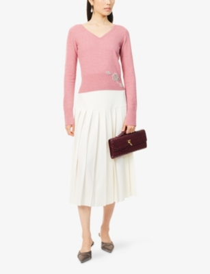 Embellished Technical-Blend Pencil Knitted Midi Skirt