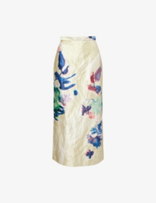 Flower-Embroidered A-Line Cotton-Blend Midi Skirt