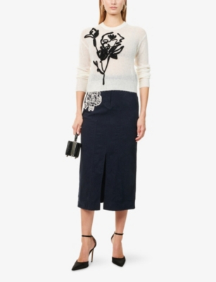 Flower-Embroidered Crewneck Wool-Blend Jumper