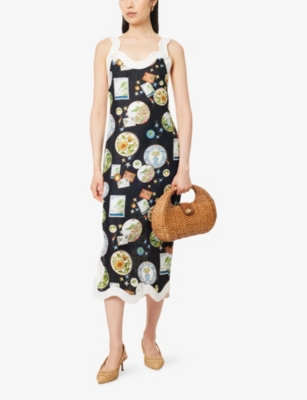 Trip Souvenir Wavy-Trims Linen Maxi Dress