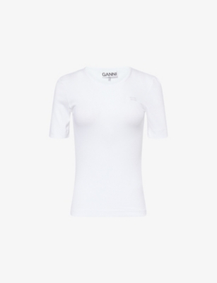 Brand-Embroidery Ribbed Stretch-Cotton T-Shirt