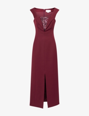 Rhinestone-Mesh Bodice Woven Maxi Dress