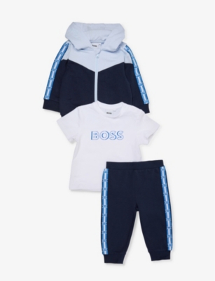Brand-Print Striped Piece of Three Cotton-Jersey Set 0-9 Months