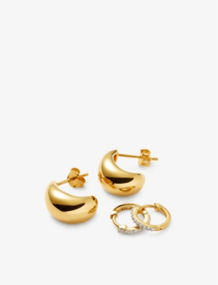 Dome Pave 18ct yellow gold-plated vermeil sterling-silver and zirconia earring set