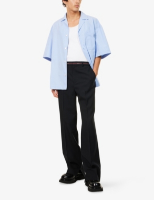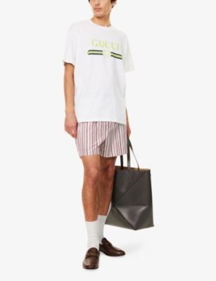 Soaking up the sun in the piazza? Pick a short-sleeved top and pair of jersey shorts from our selection of Gucci casual clothes. Opt for an all-over monogram print or standout slogan to let your amici see your superior sartorial taste. Simply add a pair of sliders or chunky trainers from the label's footwear line to cushion sightseeing feet.