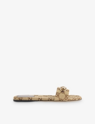 GUCCI: Blondie Canvas Flat SandalsGUCCI: Blondie Canvas Flat Sandals