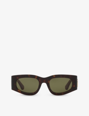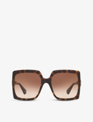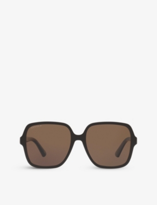 You won't have to look too hard to find dramatic, over-the-top styles in our edit of Gucci's women's square sunglasses. Think: brightly tinted lenses, chunky acetate frames and plenty of the Italian label's signature finishes and logos.