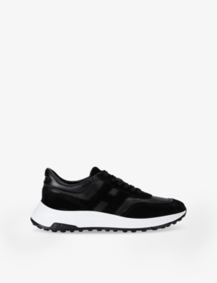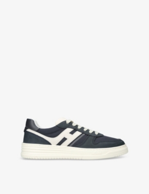 Allacciato H 630 Brand-Embroidered Leather And Mesh Low-Top Trainers