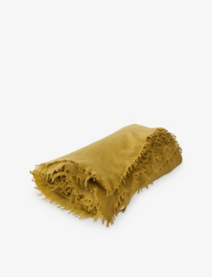 Whipstitch-finish brushed-texture lambs wool blanket- Price:£285.00