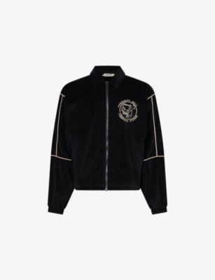 Aged Appliquéd-Logo Faux-Suede Jacket