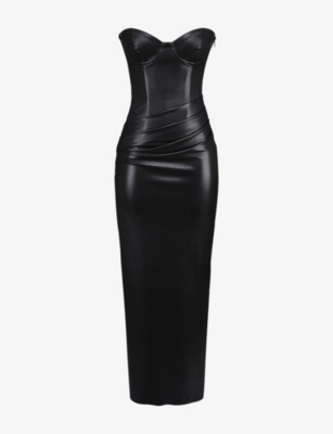 Juliana slim-fit corseted-bodice vegan-leather maxi dress