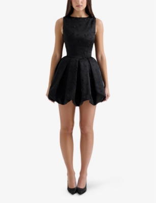 Bunny Sweetheart-Neck Flared-Skirt Stretch-Crepe Mini Dress