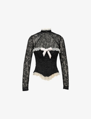 HOUSE OF CB: Perdita Metallic-Jacquard Corset and Bolero Lace TopHOUSE OF CB: Perdita Metallic-Jacquard Corset and Bolero Lace Top