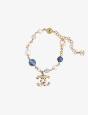 Pre-Loved Chanel Gold-Plated Faux-Pearl Beaded CC Bracelet- Price:£570.00