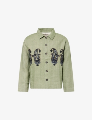 Embroidered-Mirrors Relaxed-Fit Cotton-Linen Jacket