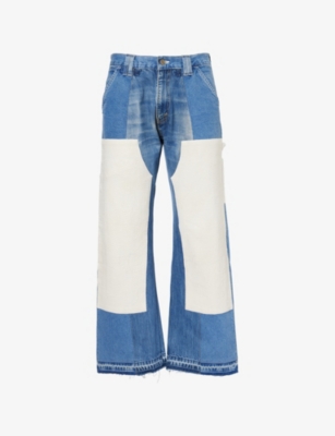 Double Knee Patch Straight-Leg Denim Jeans