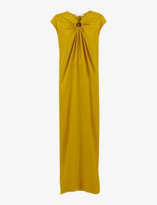 Pleated-Waist Quarter-Sleeve Stretch-Woven Midi Dress- Discount price:£55.00