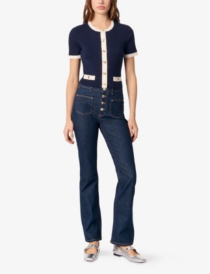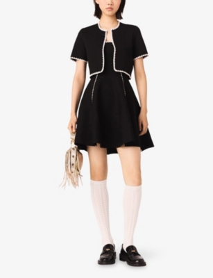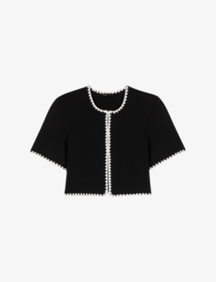 Rhinestone-Embellished Contrast-Trim Stretch Wool-Blend Cardigan- Discount price:£195.30