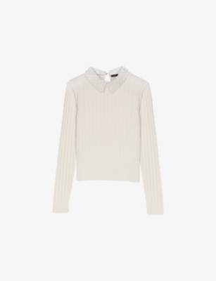 Beaded Removable-Collar Stretch Wool-Blend Cardigan- Discount price:£223.20
