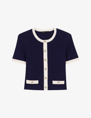 Short-sleeved striped-trim knitted cardigan- Discount price:£143.20