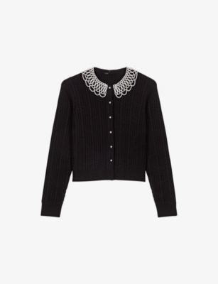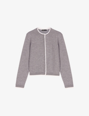 Rhinestone-Embellished Contrast-Trim Stretch Wool-Blend Cardigan- Discount price:£167.40