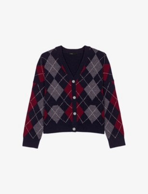 Rhinestone-Embellished Contrast-Trim Stretch Wool-Blend Cardigan- Discount price:£195.30