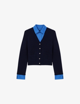 Select from women's designer cardigans in slender and slouchy oversized silhouettes. Cardigans are crafted from super-soft cotton blends, which are a popular Maje choice. On cold days, bundle up in cuddly alpaca and mohair, dyed in an array of colours. Classic black, navy and camel shades slip easily into your daily wardrobe, whether worn with denim or a pair of tapered trousers for an office-ready ensemble.