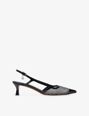 Rhinestone-Embellished Heeled Leather Mary-Jane Pumps