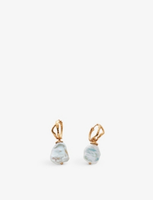 Keshi 18ct yellow gold-plated sterling silver vermeil and freshwater pearl hoop earrings- Price:£160.00